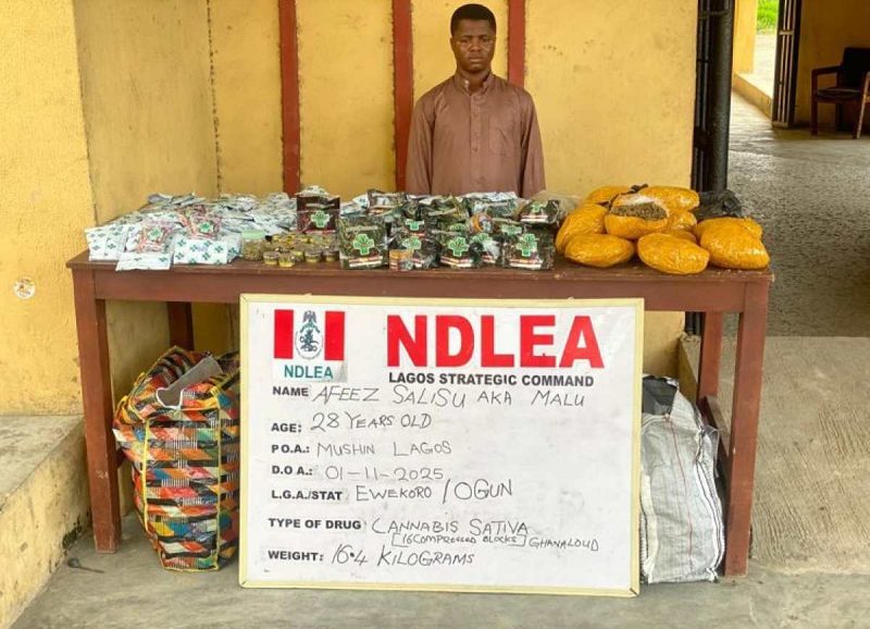 The agency said the warning followed the arrest of a 28-year-old suspected drug dealer, identified as Afeez Salisu, also known as Malu, who was apprehended on Saturday, November 1, 2025, at his residence on Akala Street, Idi Oro, Mushin, Lagos. According to the NDLEA, Salisu was packaging and distributing synthetic cannabis disguised as medicinal products.